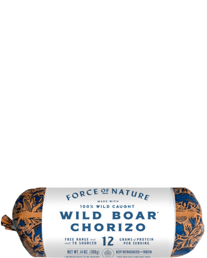 100% wild-caught boar, organic apple cider vinegar, organic smoked paprika, sea salt, organic cumin, organic ancho chile powder, organic oregano, organic coriander, organic cinnamon, organic clove