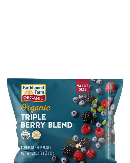 Organic Blueberries, Organic Blackberries, Organic Raspberries.